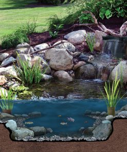 Biological filters remove suspended solids, convert toxic ammonia and nitrites to harmless nitrates and aerate the pond. Atlantic’s new FilterFalls are designed to be able to expand filter capacity as ponds age and fish grow. Efficient removal of toxins and floating particles from the water improves water quality and clarity. Oversized chamber contains more media material to start with, accepts additional filtration when needed and accommodates more choices of media. Overhanging weir with drip edge eliminates leaking due to silicone seal failure. Multiple bulkhead locations allow maximum versatility in plumbing the FilterFalls. Reinforced body prevents warping and deformation for years of worry free service. Support bars accommodate heavier stone and gravel for ease in camouflaging. FilterFalls includes installation kit, male thread adapter, and one piece liner flange.